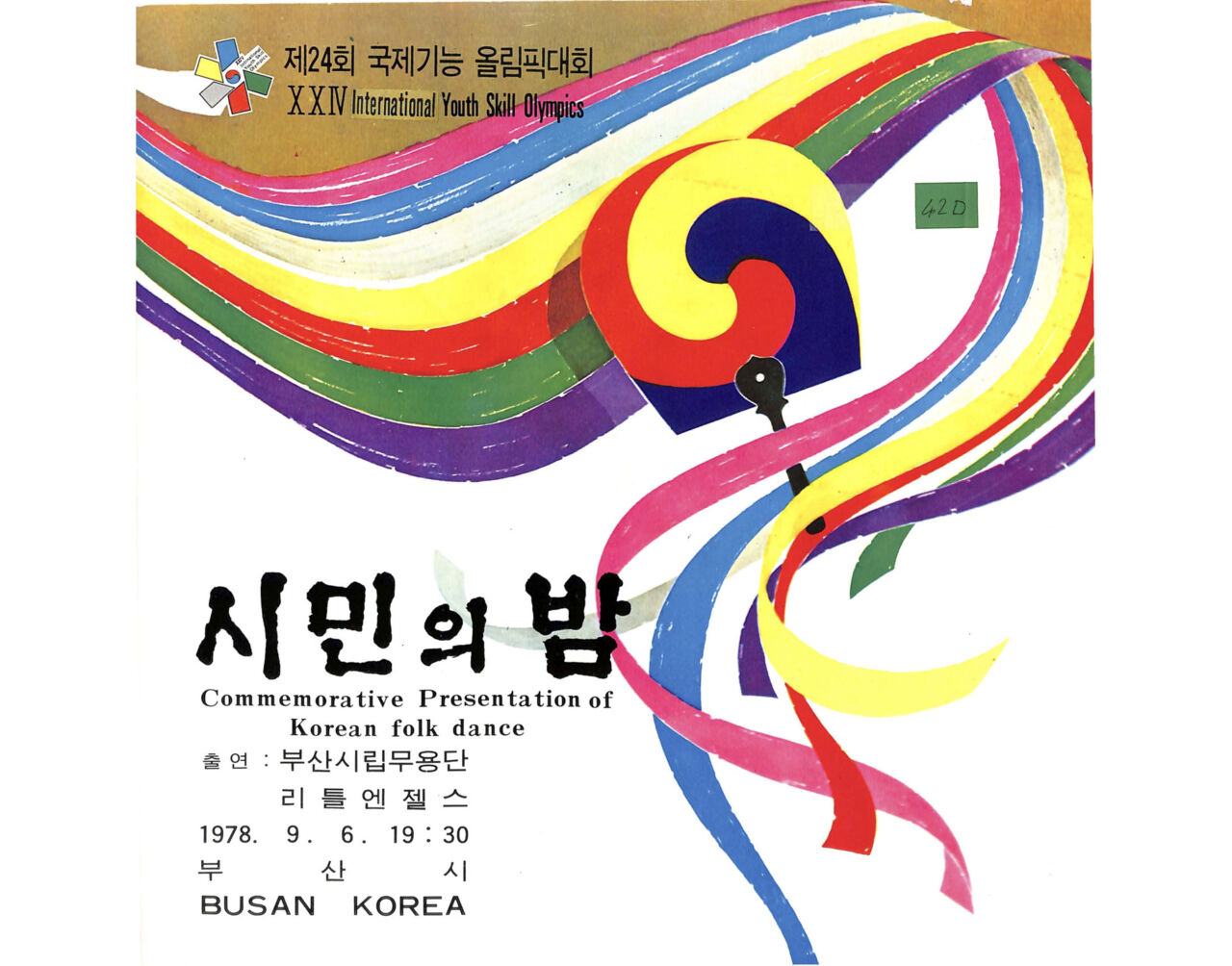 The cover from the official program of a cultural event held on 6 September 1978 during the 24th International Youth Skill Olympics in Busan.